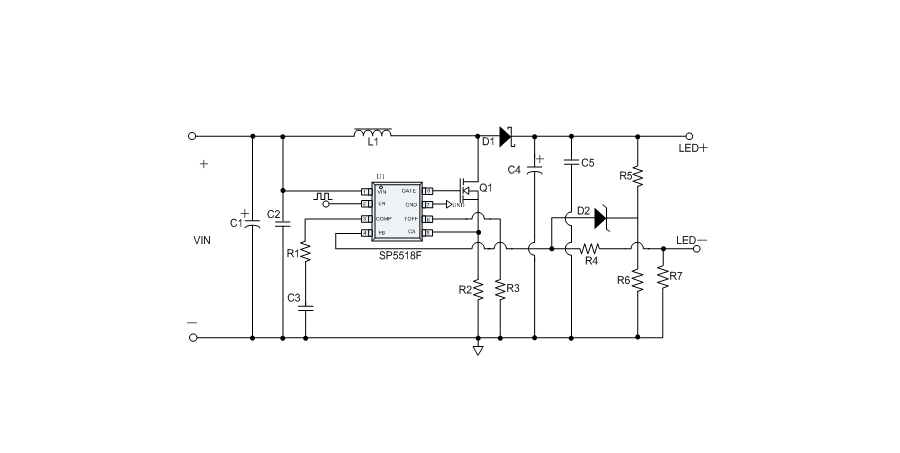 SP5518F是一顆高效率、升壓型LED驅動控制芯片,采用固定關斷時間控制模式,開關頻率可達1MHZ,關斷時間可以通過外部電容調(diào)節(jié),LED電流可以通過外部電阻進行設置。