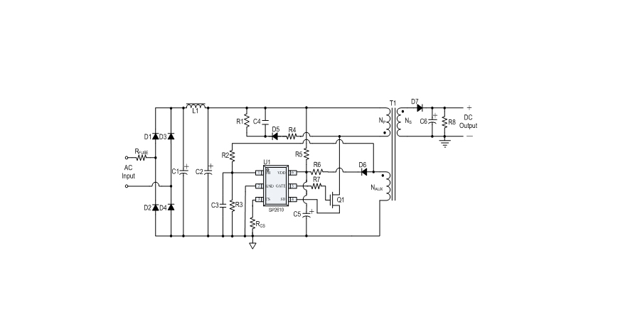 SP2610提供全面的保護功能,包括逐周期限流保護(OCP)、VDD過壓保護(OVP)、VDD欠壓保護(UVLO)、反饋環路開路保護、輸出短路保護、輸出過壓保護、過溫保護等。其中,輸出短路保護、輸出過壓保護具有自動重啟恢復的功能。